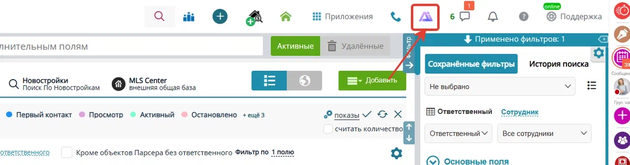 Как пользоваться ассистентами? В верхней части интерфейса системы есть специальная иконка. При переходе по ней открывается окно диалогов с AI-ассистентами.