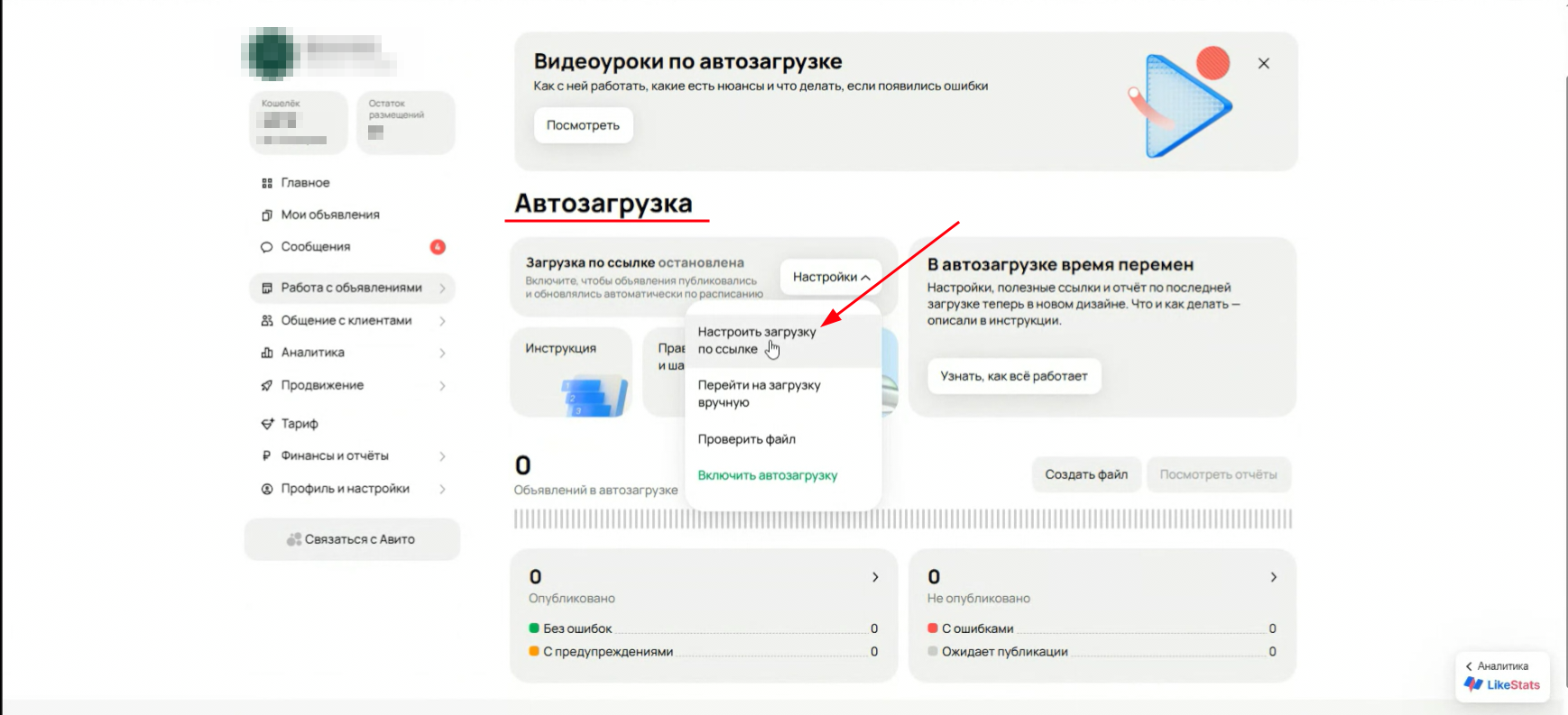 Чтобы начать использовать функцию "Автозагрузка" на Avito, необходимо войти в личный кабинет компании и перейти в соответствующий раздел меню. Обратите внимание, что возможность появляется только для аккаунтов компаний (т.е. когда выбран и оплачен тариф или пакет объявлений)