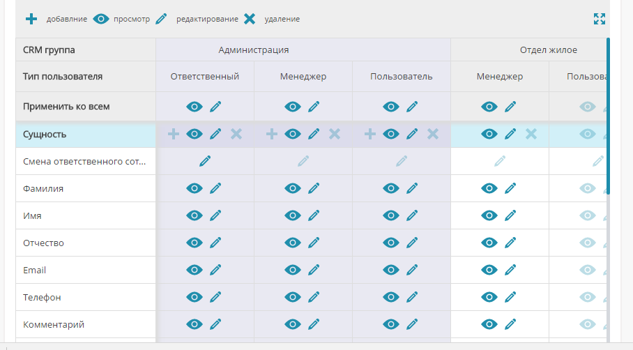 Вы можете распределить права доступа между группами сотрудников на просмотр и редактирование. Кроме того, вы можете разграничить доступ даже на отдельные поля в профиле контакта или объекта: