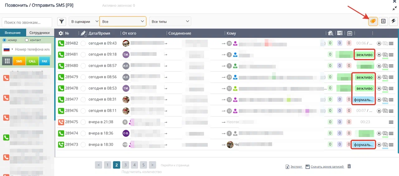 Данная возможность доступна как для встроенной АТС (sip протокол), при интеграции с ВАТС мобильных операторов, а также для звонков с досок объявлений (загруженных при активированной интеграции)