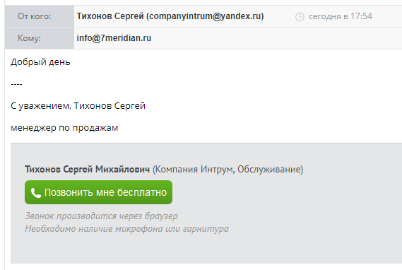 5 — добавлять ссылку на звонок из браузера в текст подписи письма (для данной опции должна быть подключена телефония):